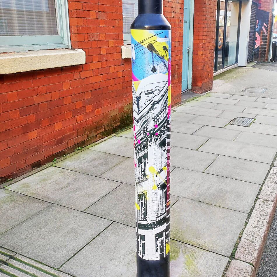 My ST GEORGE'S CULTURAL QUARTER SERIES artworks featuring Leicester City's striking architecture won a St. George’s Cultural Quarter Competition aimed at enriching the visual landscape of the area and were installed on lamp posts in Leicester Cultural Quarter.